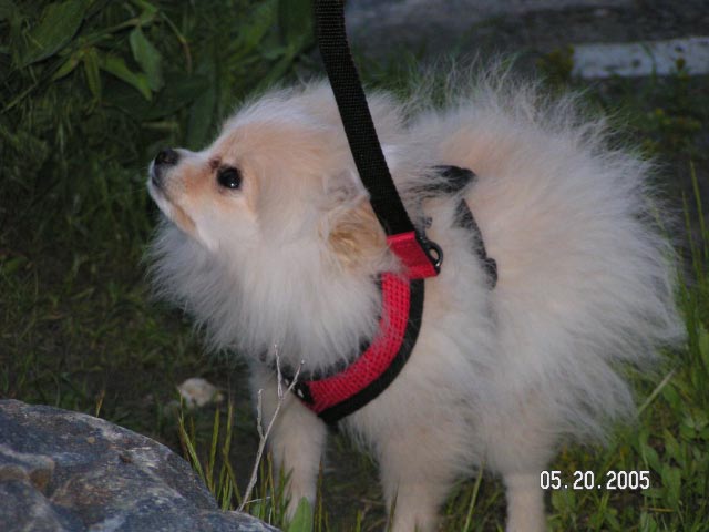 This is the first stage you will notice shortly after brining your lovely FLUFFY Pomeranian puppy home. Your puppy will have a nice thick, poofy looking coat. Then at approx 4-6 months your pom will suddenly seem to look like some poorly bred Pomeranian experiment. You might even wonder if the dog is a pure bred? You might think it is ill, or has mites ect. The nose will suddenly look longer. The body will look longer and skinnier too. Even the tail may look long and skinny curled up on the back. Don't panic, this is normal!